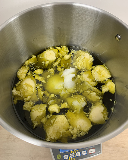 Le surgras, c’est la petite part d’huiles végétales non transformées en savon pendant la fabrication.